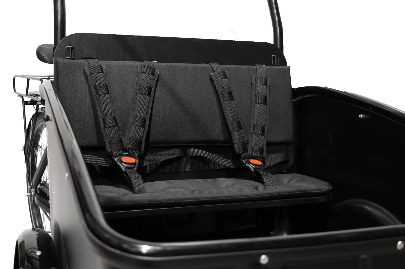 El cojín de banco familiar es un cojín de alta calidad diseñado específicamente para Cargoo y ofrece la opción de utilizar tanto un cinturón de cadera como un arnés de 5 puntos para uno o dos niños. El Cojín de Banco Familiar consta de dos partes y se fija con velcro para facilitar su cuidado y mantenimiento. El material duradero es repelente al agua y su superficie texturizada evita que se caliente y se vuelva pegajoso cuando se expone al sol durante períodos prolongados.