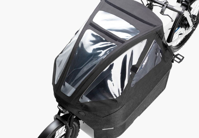 Protección de lluvia: La capota cuatro estaciones ofrece protección permanente contra el viento, la lluvia, la nieve y el sol. La altura se puede regular en función de la posición del manillar. Su práctica función de apertura parcial y el parasol adicional que incorpora proporcionan sombra y una agradable ventilación en verano.