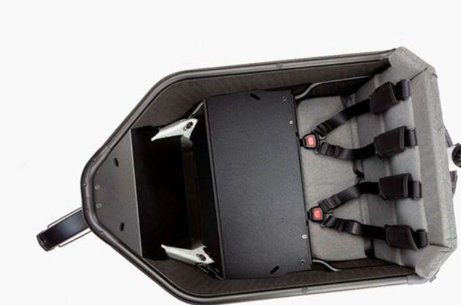 La silla infantil doble reclinable, para ir sentado o durmiendo, permite llevar a dos niños de hasta 7 años de edad. La seguridad queda garantizada con los cinturones de 5 puntos. Las sillas infantiles con los lados inclinados están fabricadas con material reciclado al 100 %. El portabultos delantero ofrece un espacio flexible de almacenamiento. Con el portabultos bajado puede transportar incluso cajas de bebidas, que puede sujetar y fijar con total seguridad mediante los dos orificios de fijación y correas adicionales. Si lo desea, el portabultos también se puede utilizar como mesita para los niños, con espacio suficiente debajo para los pies. Con el portabultos sin desplegar dispone de espacio suficiente para transportar, por ejemplo, un bolso, fijado de forma segura mediante gomas elásticas. La 47 l Box incluida en el suministro encaja a la perfección en el portabultos o, si lo desea, en un carro de la compra para realizar la compra semanal, ya que está fabricada a base de polipropileno reciclable de grado alimentario. Plegando hacia arriba el asiento de la silla infantil doble queda espacio para transportar grandes bultos. Antes de utilizarlas, consulte además la normativa de su país sobre el transporte de niños y respétela.